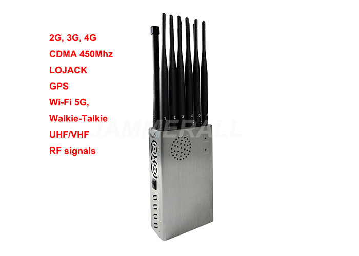 पोर्टेबल UHF VHF जैमर फुल बैंड मोबाइल फोन 4G / 3G / 2G WiFi / GPSL1 / LOJACK